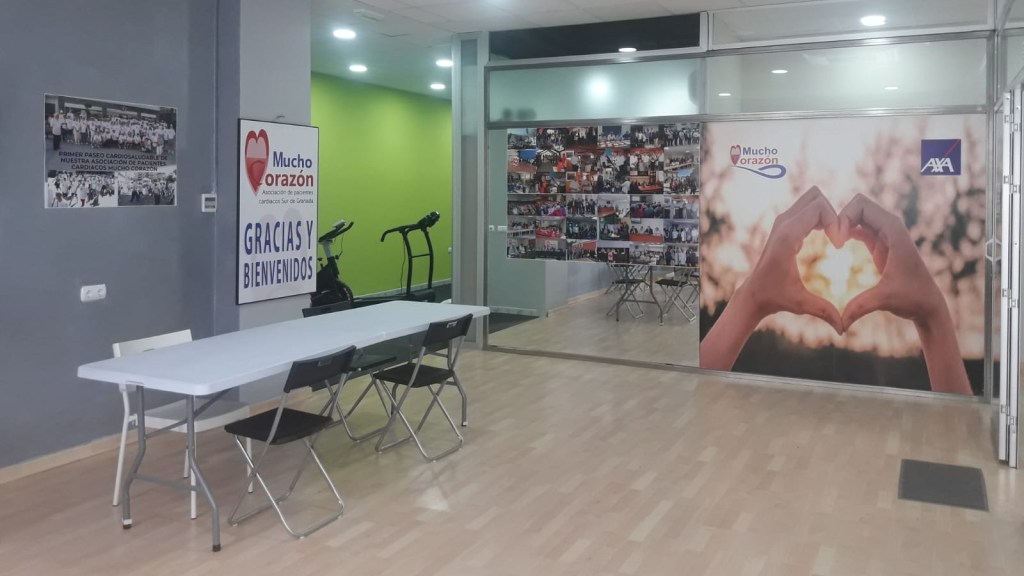 Desde el año 2021 la Asociación Mucho Corazón tiene nueva Sede en Avenida ,Enrique Martín Cuevas. Disponemos un espacio preparado para nuestros socios con sala de reuniones, despachos, zona de ejercicios, baño y espacio para proyección. Asimismo la asociación está cardioprotegida con un desfibrilación semiautomático dado que nuestros pacientes son personas con cardiopatías y debemos estar preparados para solventar cualquier situación crítica.