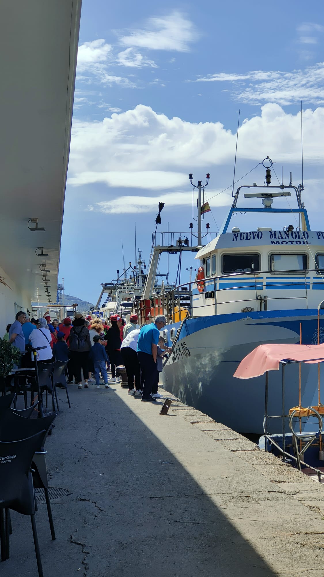 Allí el patrón mayor de la cofradía de pescadores de Motril junto a su hija y la responsable de la OMIC del Ayuntamiento de Motril nos recibieron muy amablemente y nos proporcionaron una amplia información del funcionamiento de la lonja de Motril, los barcos de pesca que faenan en nuestro litoral y las artes de pesca que se utilizan.