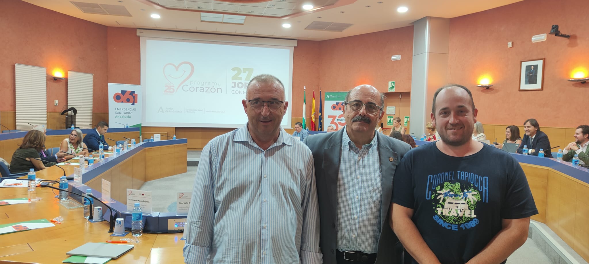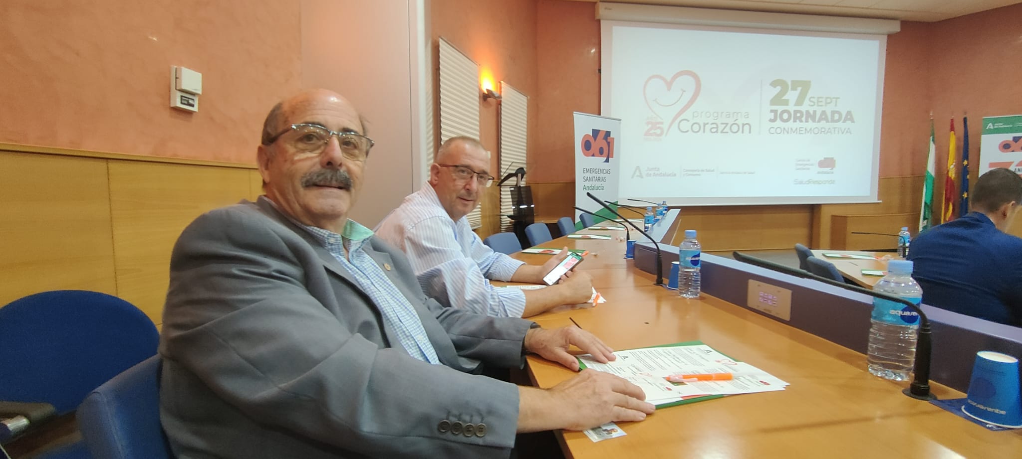 El pasado día 27 de Septiembre la Asociación de pacientes cardiacos «Mucho corazón» estuvo en una reunión del 25 Aniversario del Programa corazón con nuestros representantes. El Presidente Jose Antonio Maldonado Martin y el vicepresidente Juan Vicente Ruiz Jaldo acudieron a dicho evento donde participaron en las diferentes charlas de profesionales sanitarios y personal de la Empresa de emergencias que desde hace muchos años gestiona dicho programa.
